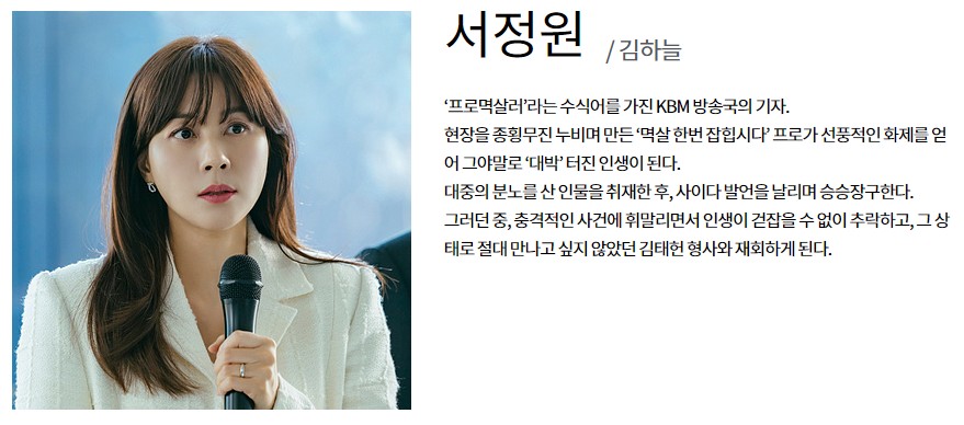 김하늘: 김하늘은 그녀의 폭넓은 연기 스펙트럼을 보여주며 중요한 역할을 맡았습니다.