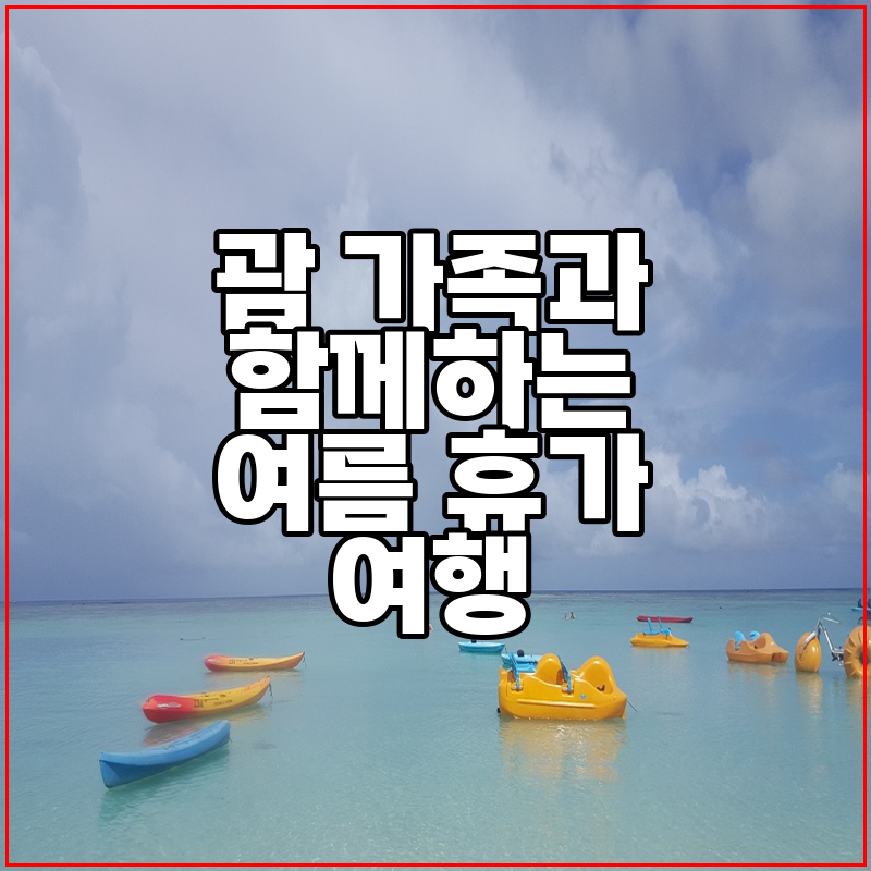 "여보, 이번 여름휴가는 어디로 가지?" 매년 돌아오는 행복한 고민, 바로 여름휴가 계획이죠! 뜨거운 태양 아래 에메랄드빛 바다에서 튜브 하나 둥둥 띄워놓고 달콤한 망고 주스 한 모금 마시는 상상만으로도 벌써부터 설렘이 가득합니다. 하지만 올해는 우리끼리가 아닌 사랑스러운 아이들과 함께하는 가족여행이기에 더욱 신중하게 여행지를 선택해야 합니다.