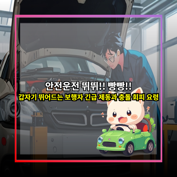 운전을 하다 보면 예측 불가능한 상황들이 참 많이 생기죠? 특히 갑자기 뛰어드는 보행자 때문에 심장이 철렁했던 경험, 한 번쯤은 있으실 거예요. 길을 걷다가도 깜짝 놀라는데, 빠른 속도로 달리는 자동차라면 오죽할까요. 😅 오늘은 이렇게 아찔한 순간, 당황하지 않고 침착하게 대처하는 긴급 제동과 충돌 회피 요령에 대해 알아보도록 하겠습니다!