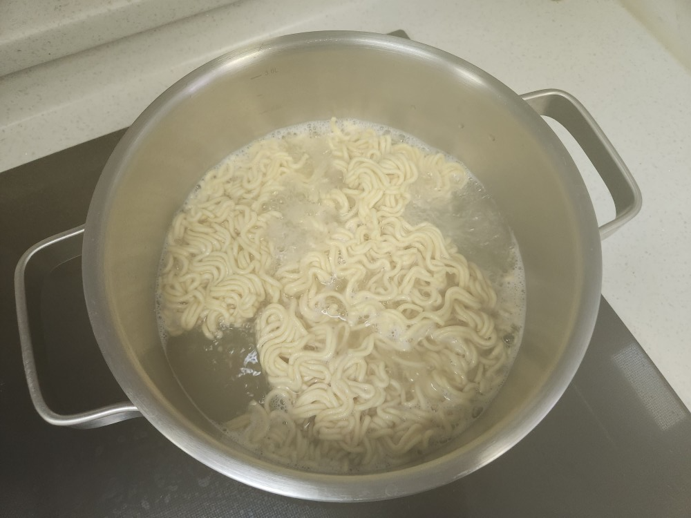 1. 600ml 물을 끓인 후, 면을 넣고 5분간 더 끓입니다.