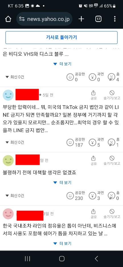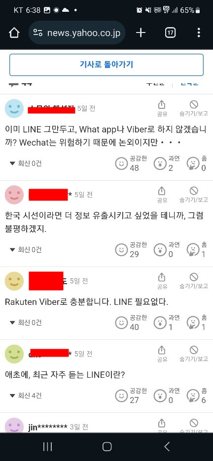 라인은 일본 국민앱으로 많이 관련 기사가 많지 않을 까 생각했는데, 그렇게 많은 글이 보이지는 않았습니다.