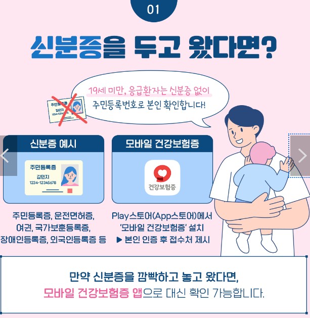 - 응급 환자 등은 신분증 지참 의무에서 제외됩니다.