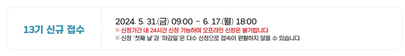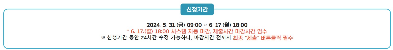 신청 기간: 2024년 5월 31일 (금) 09:00 ~ 6월 17일 (월) 18:00