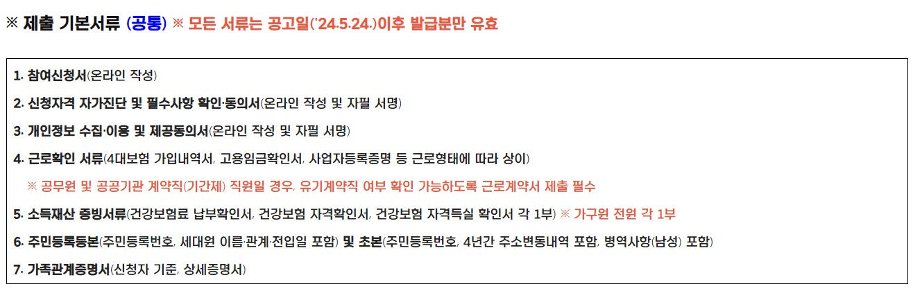 모든 서류는 2024년 5월 24일 이후 발급분만 유효합니다.