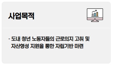 단순히 목돈 마련뿐만 아니라 재무, 노무 관련 교육과 금융 컨설팅, 자기개발 프로그램까지 지원하여 청년들의 사회적 자립을 돕습니다.