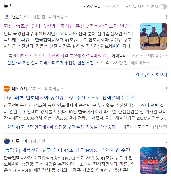 한국전력(한전)이 인도네시아에서 41조 원 규모의 대규모 송전망 사업을 추진한다는 기사를 봤거든요.